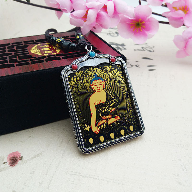 Black gold thangka shakyamuni pendant natal Buddha pendant